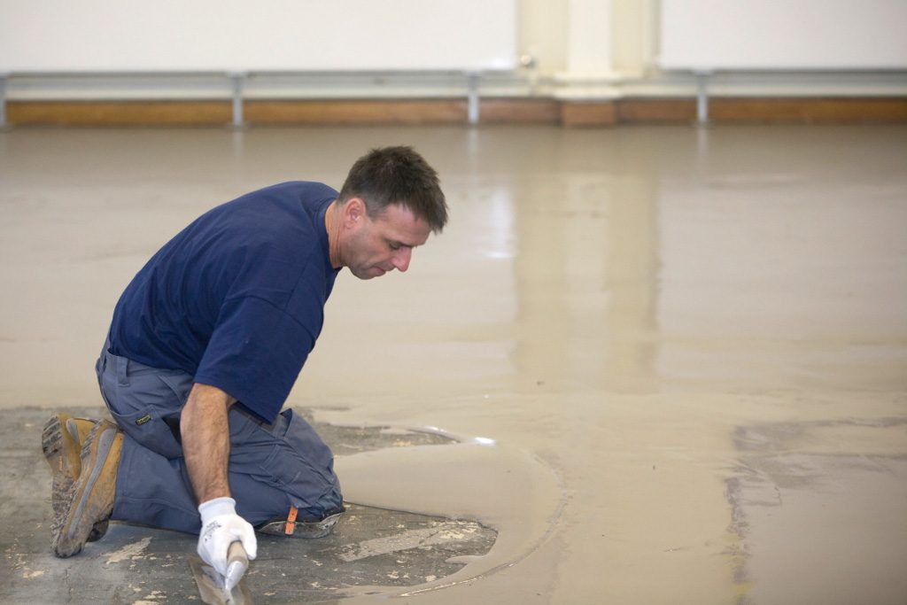 按照材料的用量,水固比(或液固比)及施工面積計(jì)算各種材料用量,用攪拌機(jī)攪拌均勻,將攪拌好的漿體倒于地面上,接茬處可輕輕刮平。